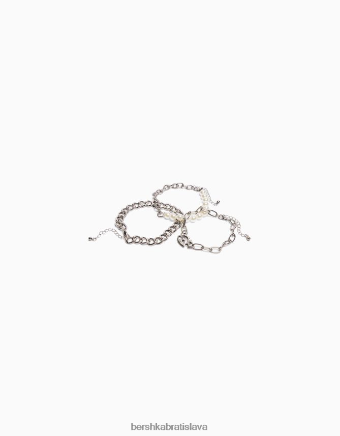 Bershka muži balenie 3 náramkov z perlových retiazok striebro príslušenstvo B86RXX3648 Bershka Nohavice