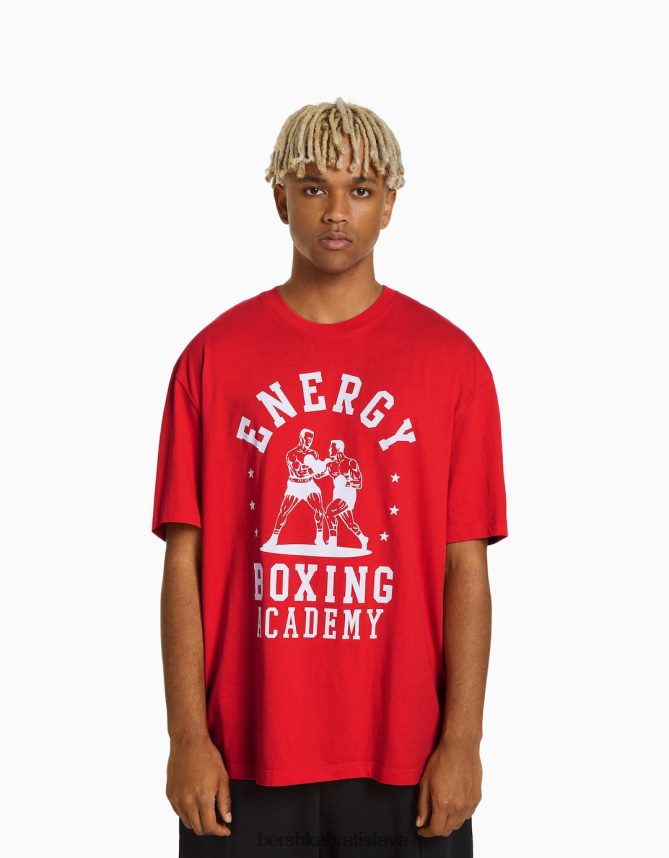 Bershka muži boxy fit tričko s krátkym rukávom a potlačou boxu červená oblečenie B86RXX2706 Bershka Nohavice