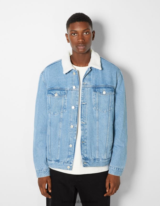 Bershka muži džínsová bunda s fleecovou podšívkou svetlo modrá oblečenie B86RXX3102 Bershka Nohavice