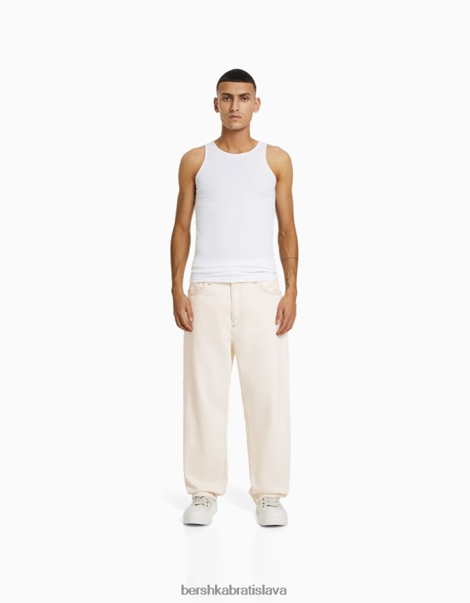 Bershka muži farebné voľné džínsy krém oblečenie B86RXX3113 Bershka Rifle