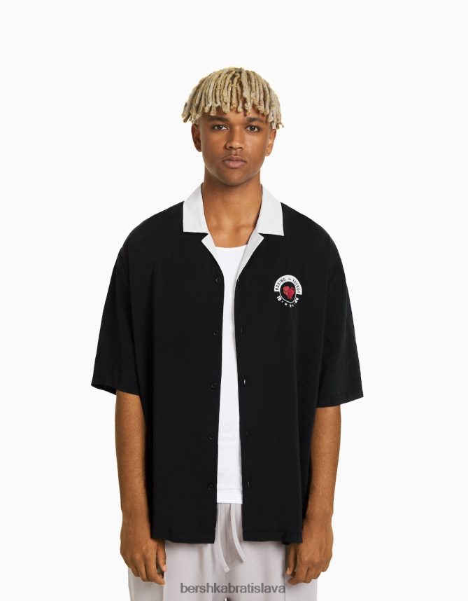 Bershka muži košeľa s kontrastnou boxerskou potlačou s krátkym rukávom čierna oblečenie B86RXX2874 Bershka Nohavice