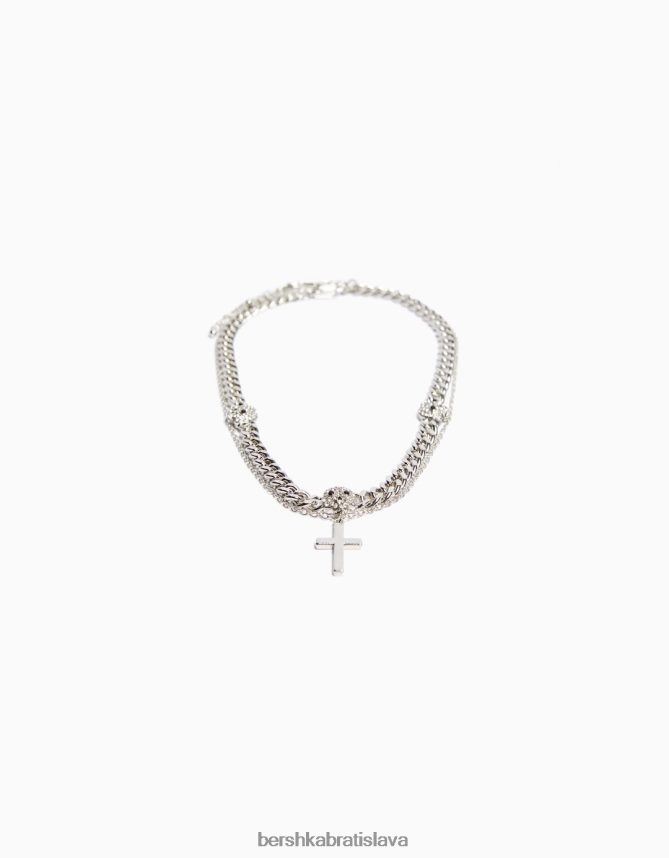 Bershka muži lebkový krížový náhrdelník striebro príslušenstvo B86RXX3690 Bershka Nohavice