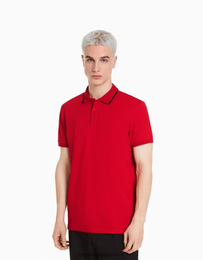 Bershka muži pruhované polo s krátkym rukávom červená oblečenie B86RXX2681 Bershka Rifle