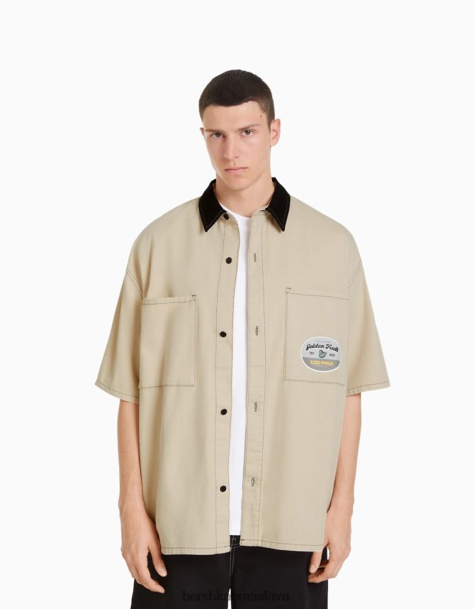Bershka muži riflová pracovná košeľa s krátkym rukávom krém oblečenie B86RXX2882 Bershka Rifle