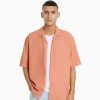 Bershka muži rustikálna košeľa voľného strihu s krátkym rukávom svetlo modrá oblečenie B86RXX2942 Bershka Rifle