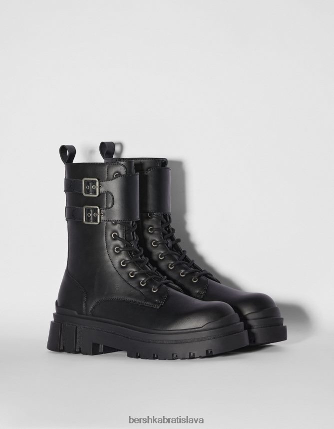Bershka muži šnurovacie čižmy s prackami čierna obuv B86RXX3462 Bershka Nohavice