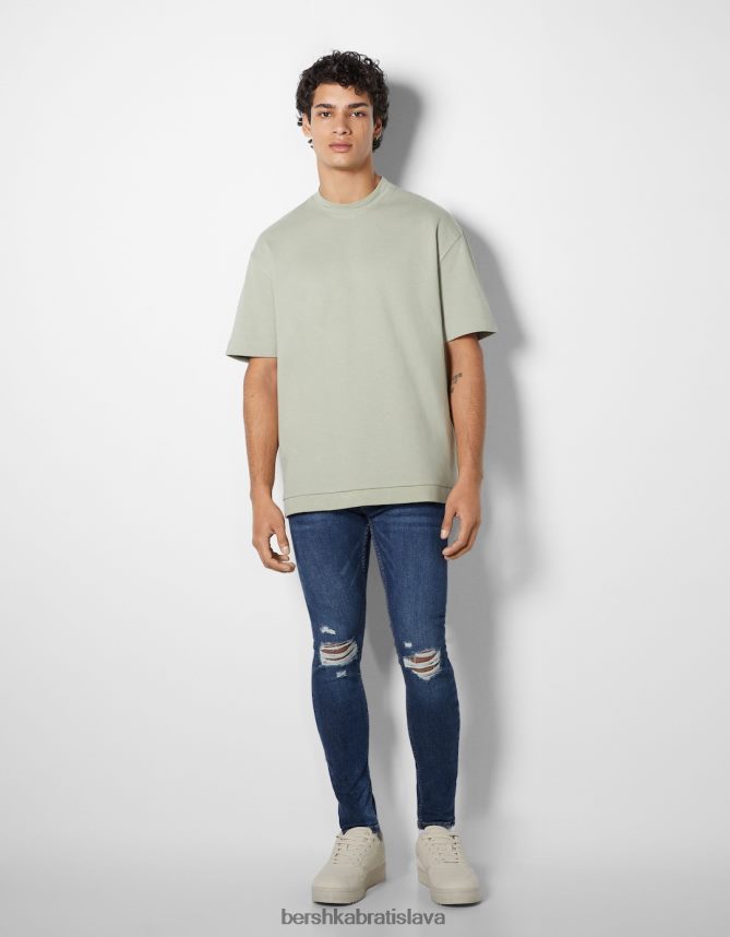 Bershka muži super úzke roztrhané džínsy modrá oblečenie B86RXX3168 Bershka Nohavice