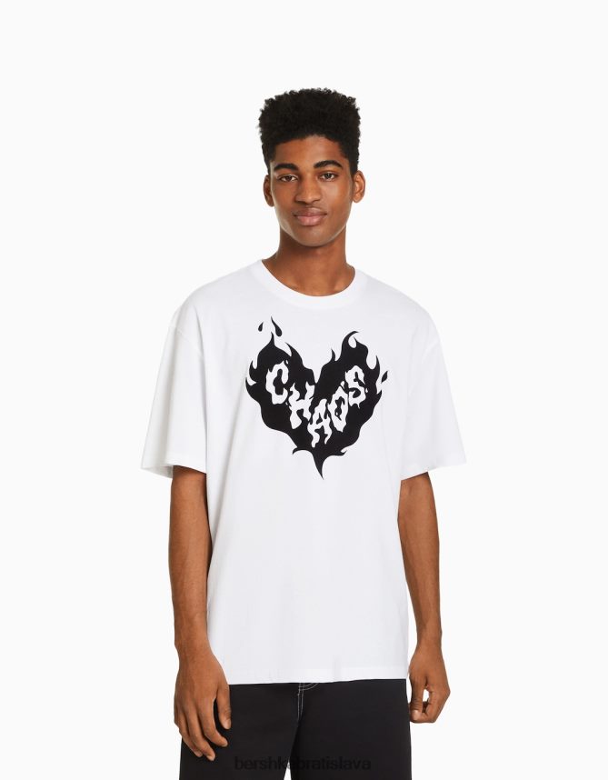 Bershka muži tričko boxy fit s krátkym rukávom s potlačou biela oblečenie B86RXX2610 Bershka Nohavice
