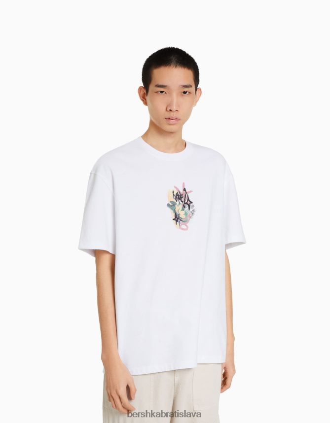 Bershka muži tričko boxy fit s krátkym rukávom s potlačou biela oblečenie B86RXX2670 Bershka Nohavice