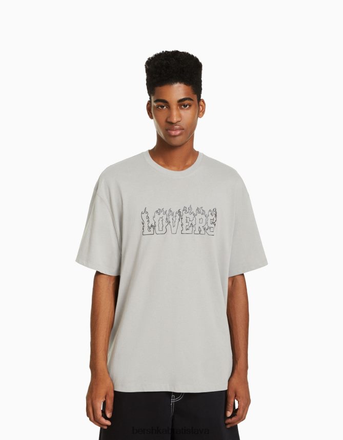 Bershka muži tričko boxy fit s krátkym rukávom s potlačou sivá oblečenie B86RXX2609 Bershka Rifle