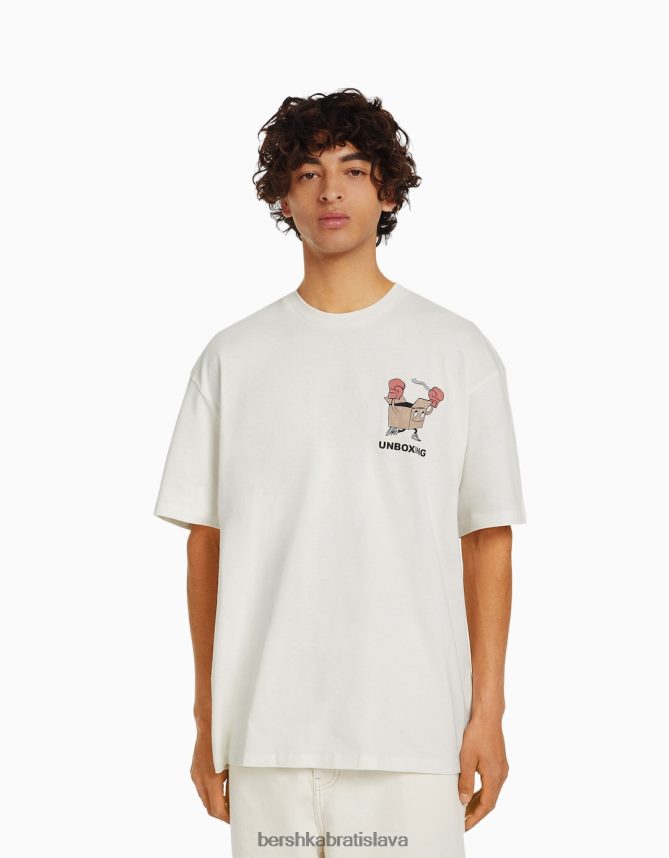 Bershka muži tričko s krátkym rukávom a potlačou biela oblečenie B86RXX2677 Bershka Slovakia