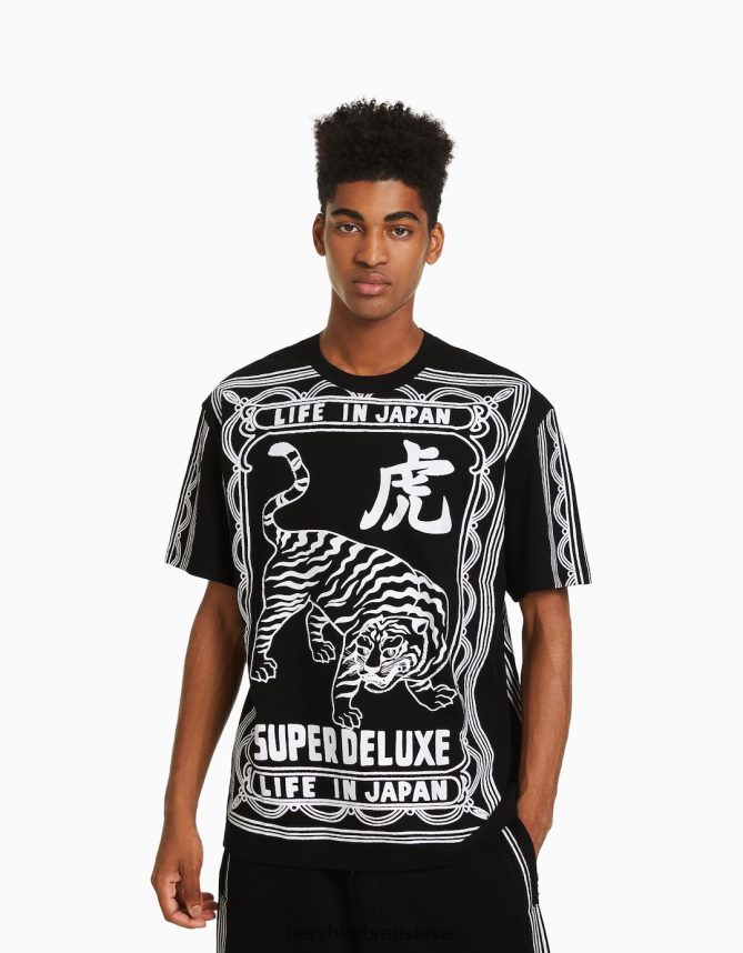 Bershka muži tričko s krátkym rukávom a potlačou sloganu čierna oblečenie B86RXX2603 Bershka Rifle