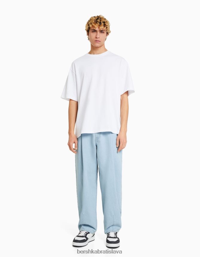 Bershka muži voľné džínsy balónového strihu so záhybmi svetlo modrá oblečenie B86RXX3173 Bershka Rifle