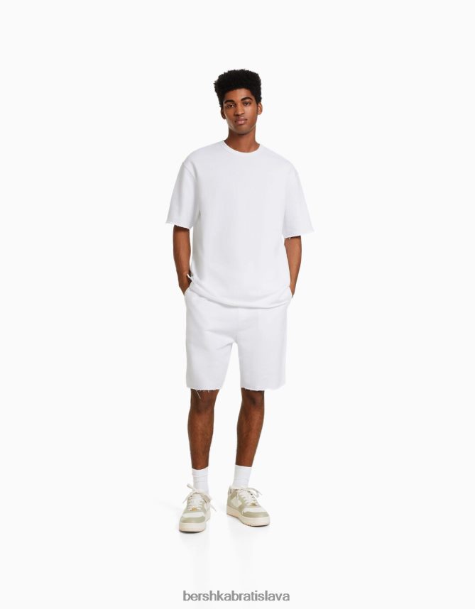 Bershka muži vyblednuté plyšové bermudy biela oblečenie B86RXX3364 Bershka Slovakia