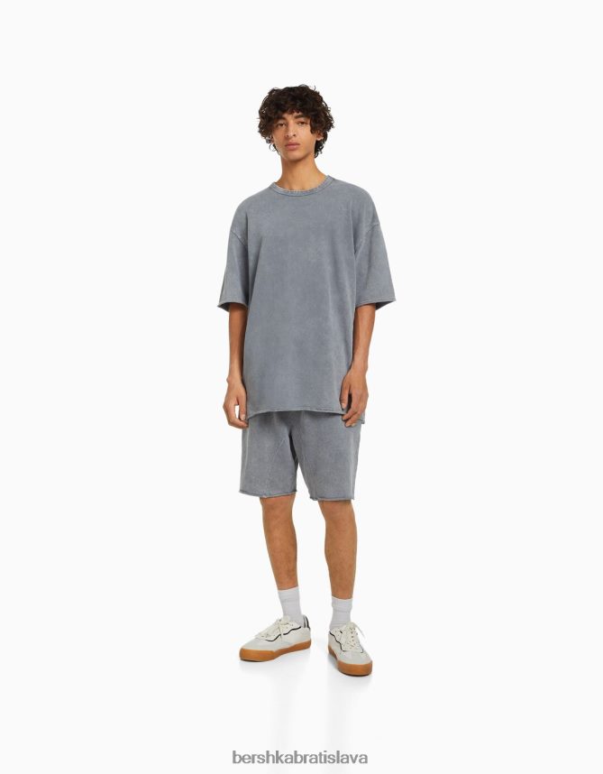 Bershka muži vyblednuté plyšové bermudy sivá oblečenie B86RXX3362 Bershka Rifle