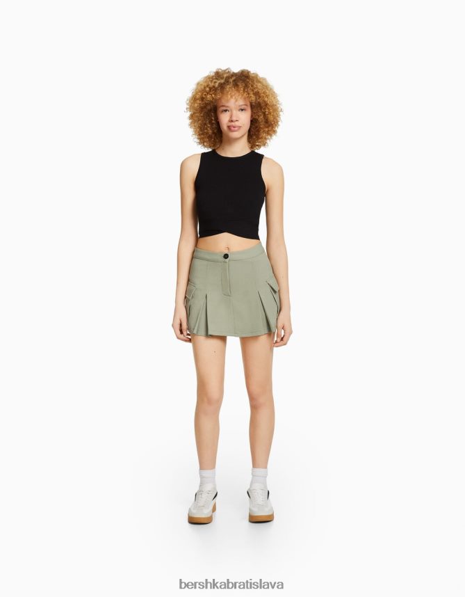 Bershka unisex cargo skort na mieru s vreckami kaki oblečenie B86RXX4037 Bershka Rifle