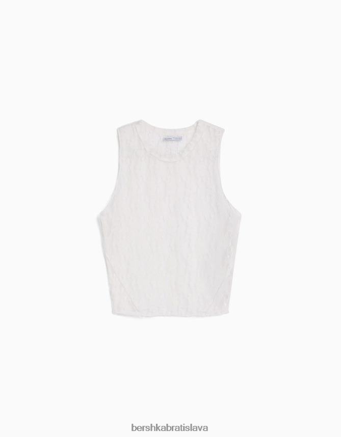 Bershka unisex čipkovaná košeľa bez rukávov krém oblečenie B86RXX3858 Bershka Nohavice