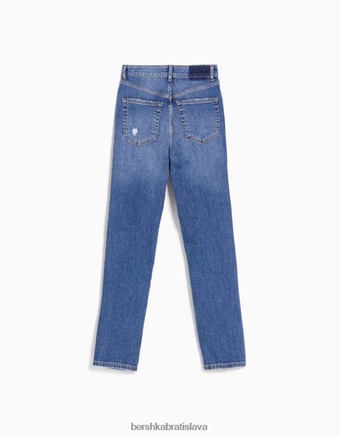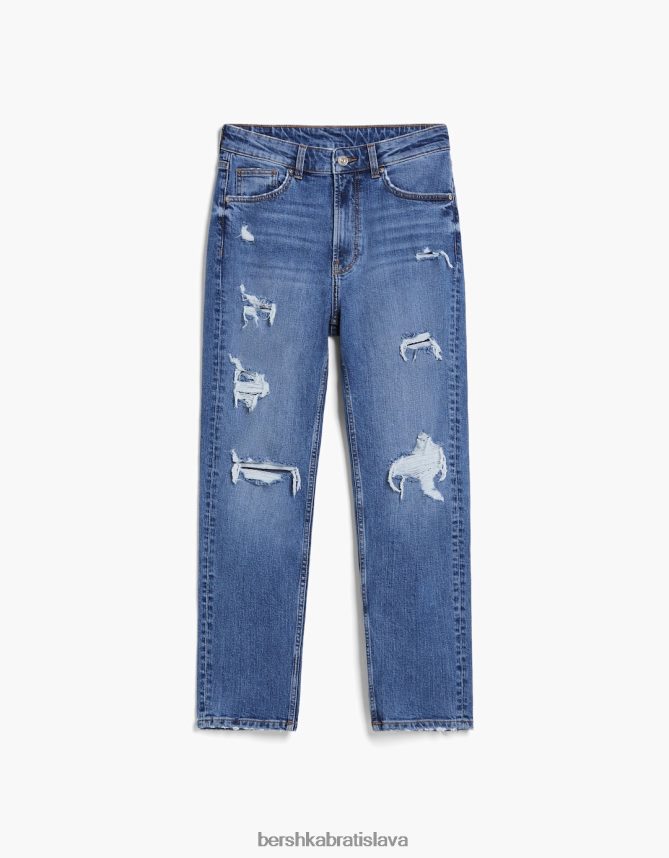 Bershka unisex roztrhané relax fit mom fit džínsy modrá oblečenie B86RXX3960 Bershka Nohavice