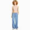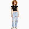 Bershka unisex roztrhané skrátené rovné nohavice mama džínsy čierna oblečenie B86RXX3963 Bershka Nohavice