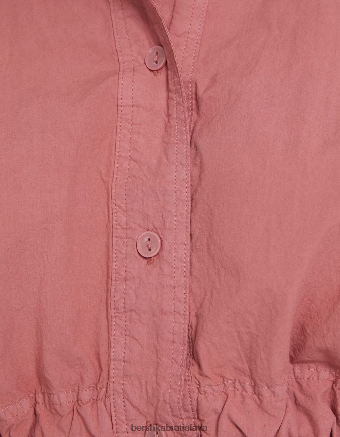 Bershka unisex skrátená košeľa s dlhým rukávom a detailom na ramienka ružová oblečenie B86RXX3768 Bershka Nohavice