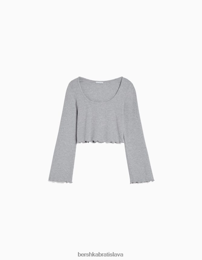 Bershka unisex tričko s dlhým rukávom a výstrihom sivá oblečenie B86RXX3818 Bershka Rifle