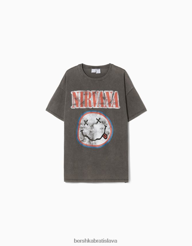 Bershka unisex Tričko s krátkym rukávom s potlačou nirvana sivá oblečenie B86RXX3703 Bershka Slovakia