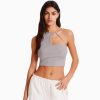 Bershka ženy Asymetrický crop top bez rukávov biela oblečenie B86RXX708 Bershka Nohavice