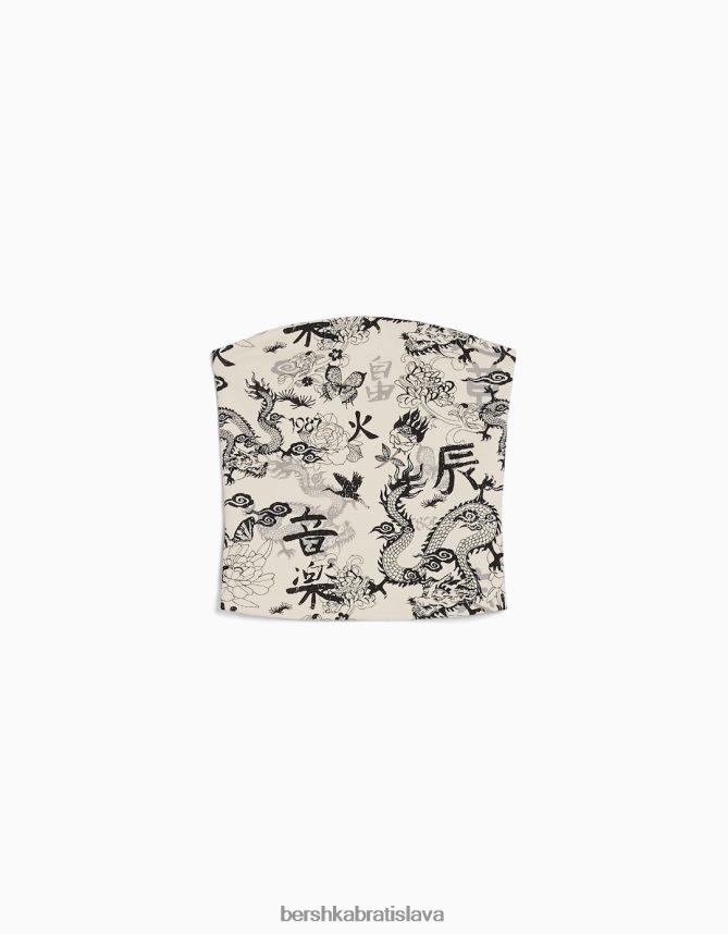 Bershka ženy bandeau top s potlačou krém oblečenie B86RXX652 Bershka Slovakia