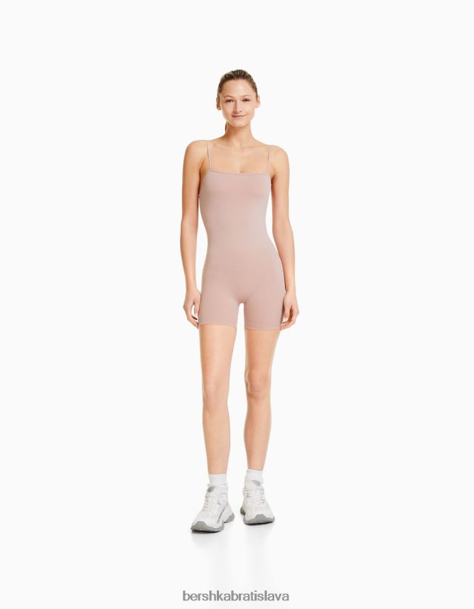 Bershka ženy bezšvová cyklistická kombinéza na ramienka s hranatým výstrihom ružová oblečenie B86RXX58 Bershka Slovakia