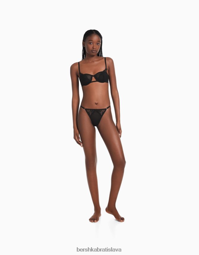 Bershka ženy bodkované sieťované blond čipkované tangá čierna oblečenie B86RXX1749 Bershka Nohavice
