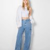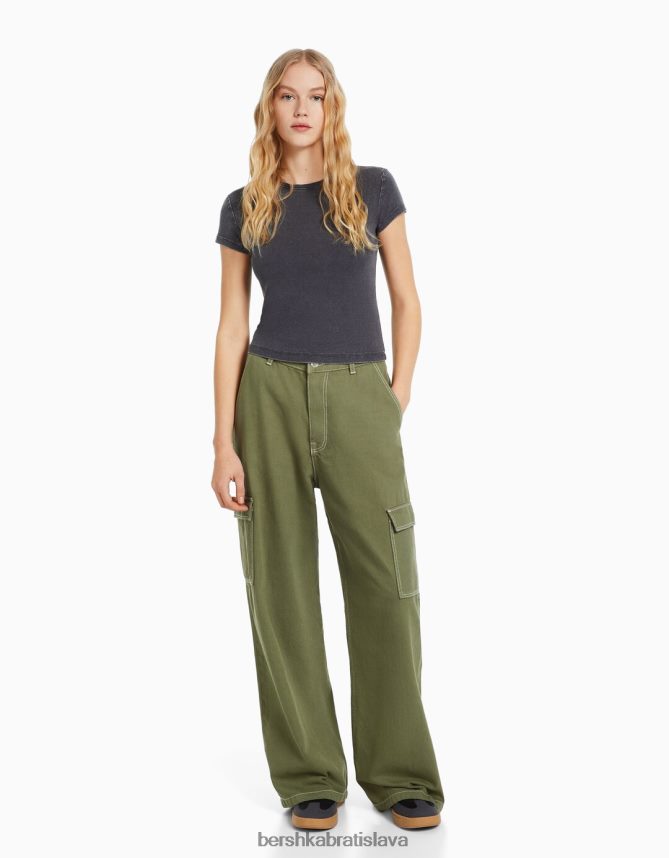 Bershka ženy cargo džínsy so širokými nohavicami kaki oblečenie B86RXX1341 Bershka Nohavice