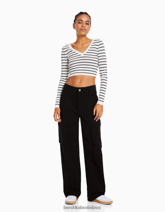 Bershka ženy cargo nohavice rovného strihu čierna oblečenie B86RXX1307 Bershka Rifle
