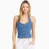 Bershka ženy džínsová vesta s odhalenými ramenami a gombíkmi svetlo modrá oblečenie B86RXX1955 Bershka Rifle