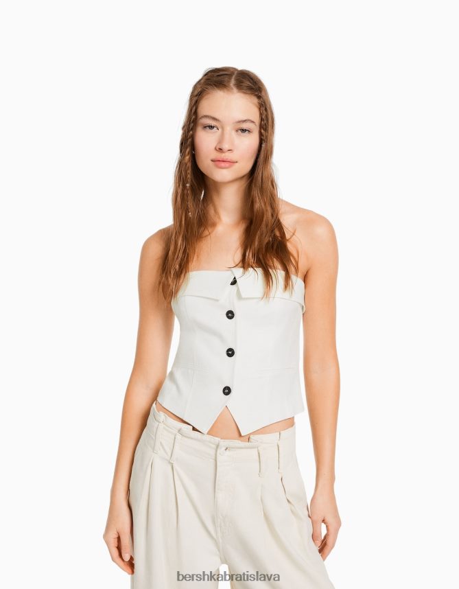 Bershka ženy korzetová vesta na mieru s odhalenými ramenami off white oblečenie B86RXX683 Bershka Rifle