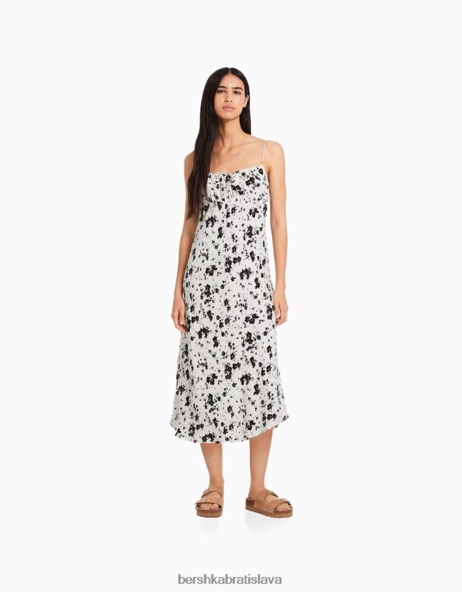 Bershka ženy krepové midi šaty na ramienka biela/čierna oblečenie B86RXX74 Bershka Rifle