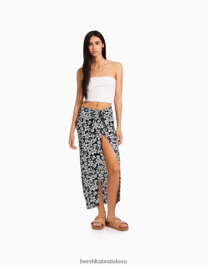 Bershka ženy midi sukňa s kvetinovou potlačou čierna oblečenie B86RXX1627 Bershka Slovakia