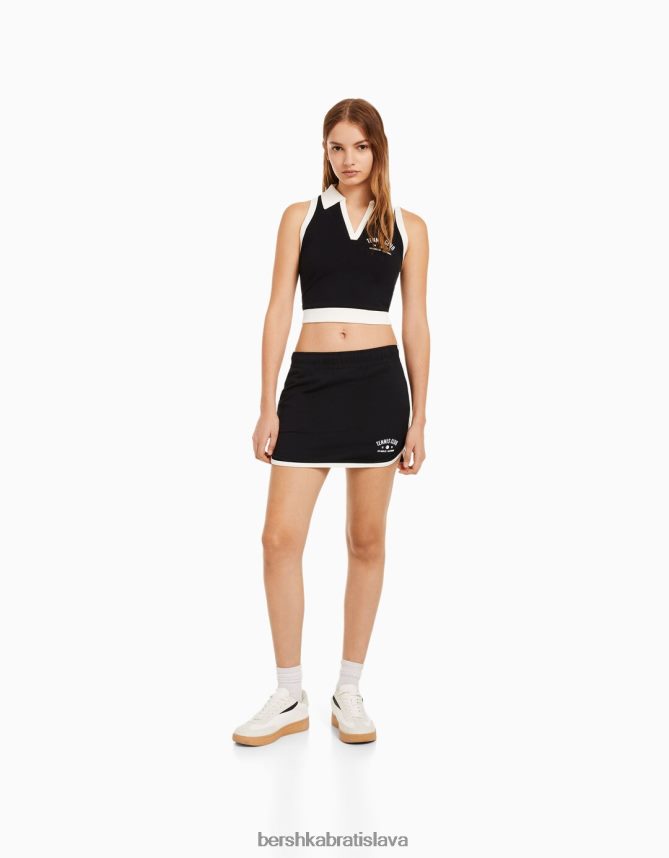 Bershka ženy mikina bez rukávov s potlačou a súprava skort čierna oblečenie B86RXX2043 Bershka Nohavice