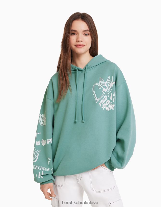 Bershka ženy mikina s potlačou zelená oblečenie B86RXX1252 Bershka Slovakia