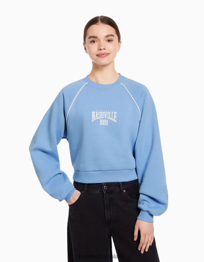 Bershka ženy mikina s výstrihom a kontrastnou potlačou modrá oblečenie B86RXX1264 Bershka Slovakia