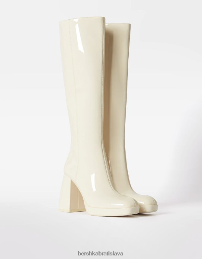 Bershka ženy mini čižmy na platforme na vysokom opätku ecru obuv B86RXX2309 Bershka Rifle