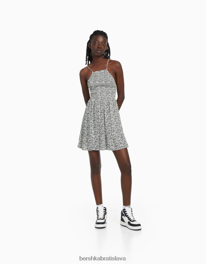 Bershka ženy mini šaty s potlačou na krku biela/čierna oblečenie B86RXX269 Bershka Rifle