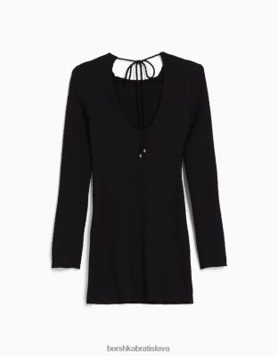 Bershka ženy minišaty s dlhým rukávom s otvorom vzadu a mašľou čierna oblečenie B86RXX4104 Bershka Nohavice