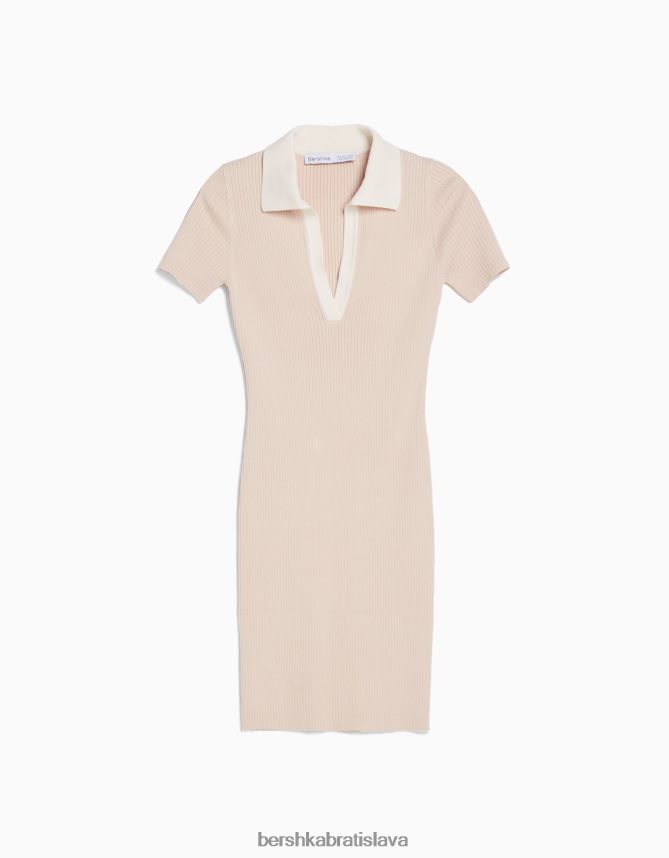 Bershka ženy minišaty s polo golierom s krátkym rukávom piesku oblečenie B86RXX267 Bershka Nohavice
