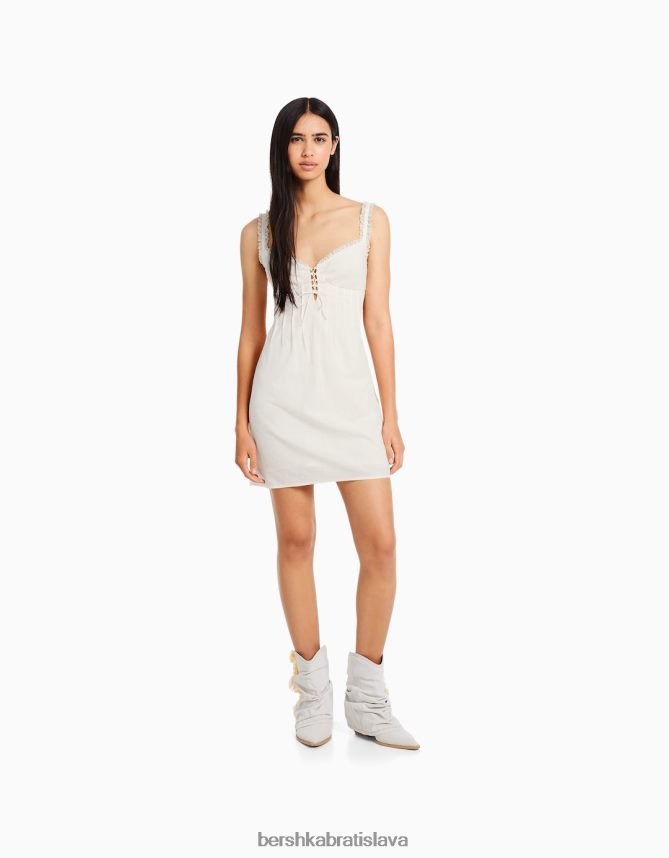Bershka ženy na ramienka rustikálne korzetové minišaty s detailom viazania béžová oblečenie B86RXX178 Bershka Slovakia