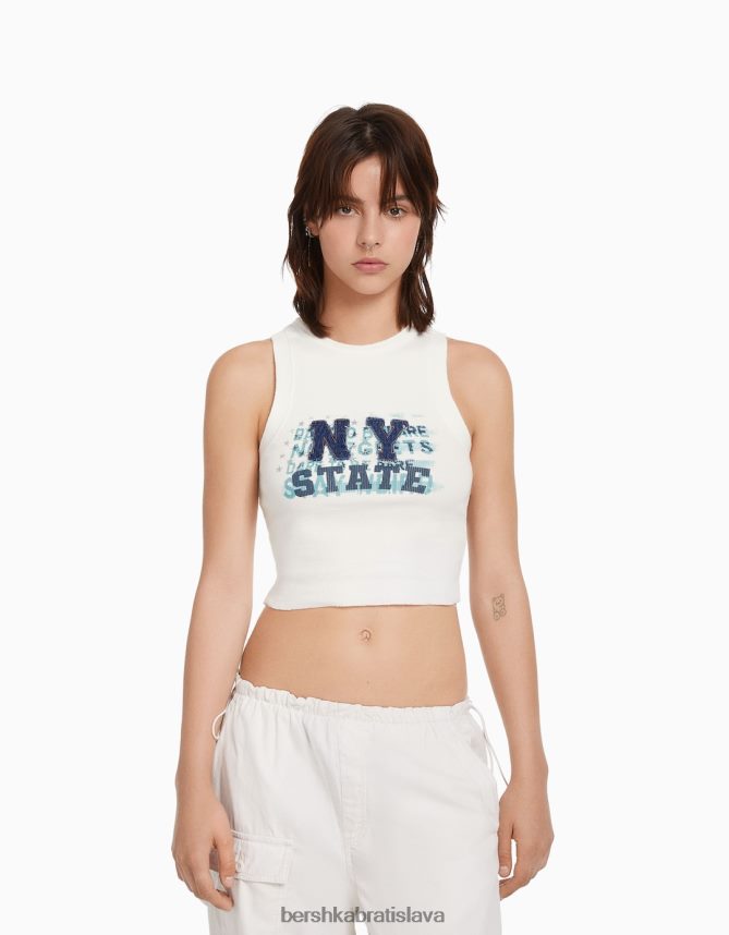 Bershka ženy náplasťové tričko bez rukávov off white oblečenie B86RXX610 Bershka Slovakia