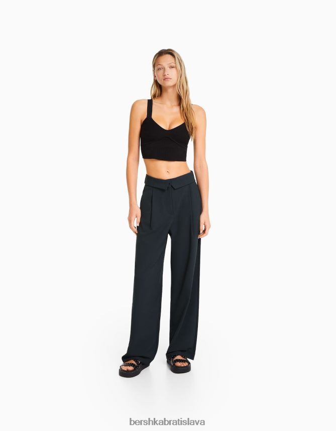 Bershka ženy nohavice na mieru s vyhrnutým pásom tmavo šedá oblečenie B86RXX1429 Bershka Slovakia