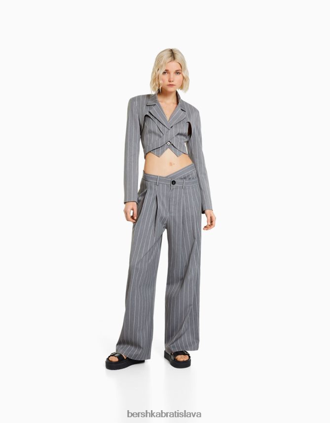 Bershka ženy odnímateľná súprava vestového saka a nohavíc s prúžkami sivá oblečenie B86RXX1997 Bershka Rifle