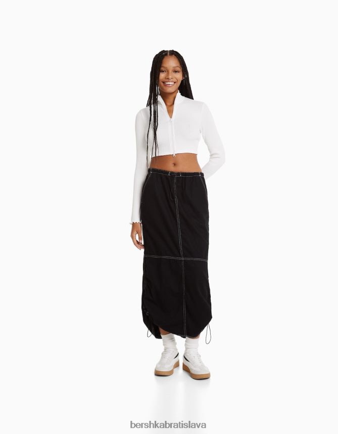 Bershka ženy padáková džínsová midi sukňa čierna oblečenie B86RXX1379 Bershka Rifle