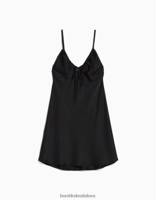 Bershka ženy páskové padavé saténové minišaty s naberaním čierna oblečenie B86RXX4112 Bershka Rifle