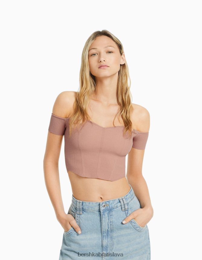 Bershka ženy pletený korzet s krátkym rukávom ružová oblečenie B86RXX802 Bershka Slovakia